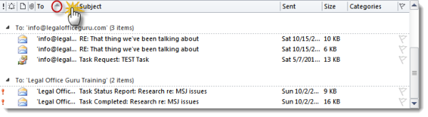 Therefore, if there is no compelling enough reason to keep the forwarded emails stored, you should go ahead and delete them from Sent Items folder. The one way in which you can make the process easy is by sorting the emails in the Sent Items folder by the recipient. To do so, click on the To header in Sent Items folder as is shown in the image below: